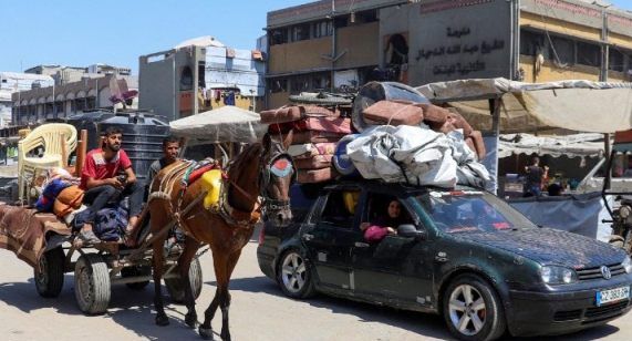 Displaced Palestinians flee amid an Israeli military operation in Gaza City