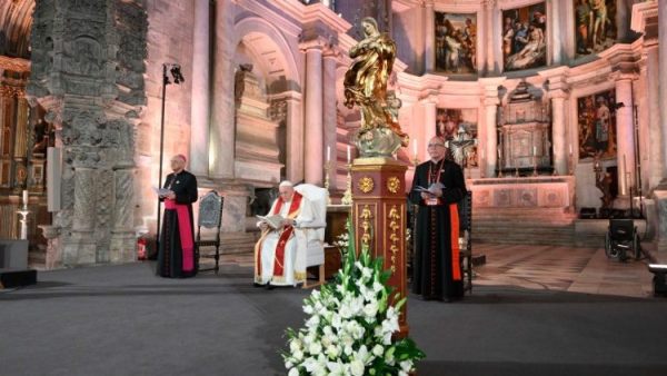 Praying Vespers in the 16th century Jeronimos Monastery in Lisbon on the first day of his visit to Portugal for World Youth Day 2023, Pope Francis urged the clergy and religious to proclaim the saving message of the Gospel with renewed impetus in a world in which there is so much darkness.