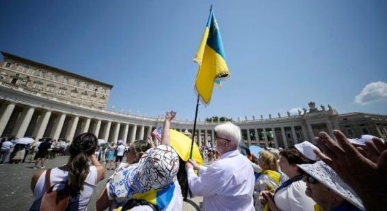 Ukrainian Pilgrims in Prayer at St. Peter's Square in the Vatican (ANSA)