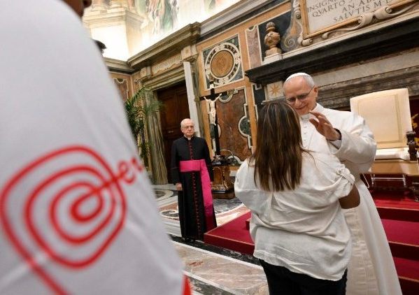Pope Leo XIV during greetings with young people of Peru (@Vatican Media)