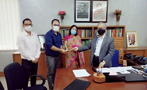 The Vice Chancellor of the University of Dhaka, Professor Dr. Md. Akhtaruzzaman handed over a cheque of MPhil Research Grant of Cao Dai Overseas Missionary (CDOM), California, USA, for this year 2020 to Injamam Mahbub Mojumder at his office on Wednesday October, 7, 2020. The Chairperson of the Department of World Religions and Culture, Professor Dr. Fazrin Huda and Dr. Mohammad Jahangir Alam, Associate Professor were present at the event. The grant was $1,000 *One Thousand US Dollars.