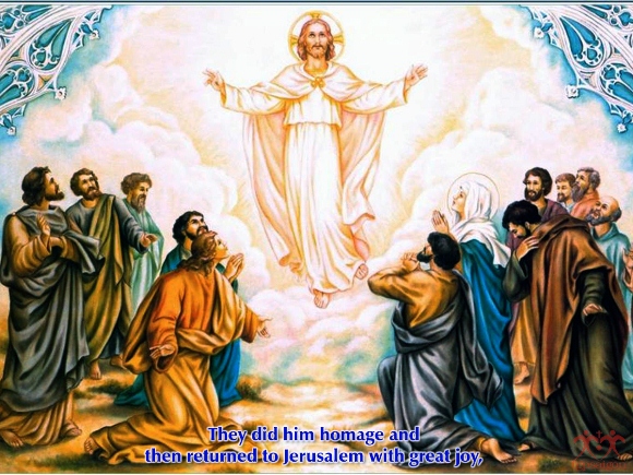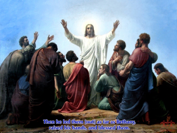 'And as He blessed them, He withdrew (and was taken to heaven)'. In this Solemnity, the invitation of our Master —wrapped up in our humanity— who finishes his mission in this world, strongly reverberates, while leaving us to sit at the right hand of the Father and send us the strength from above, the Holy Spirit.