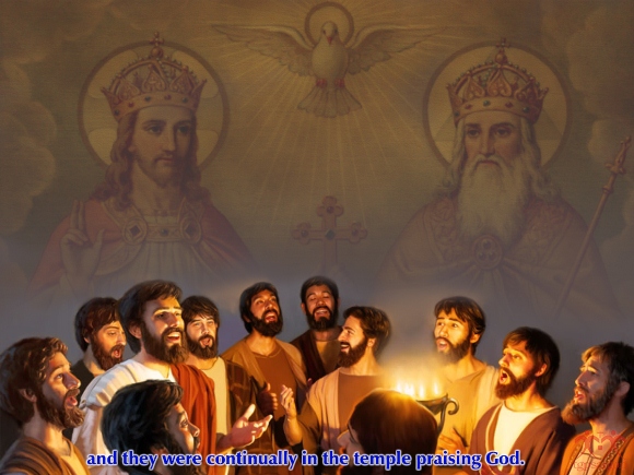 ' All you peoples, clap your hands; shout to God with joyful cries (...). God mounts the throne amid shouts of joy; the Lord, amid trumpet blasts. Sing praise to God, sing praise; sing praise to our king, sing praise'.