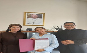 27 June 2022/Rome – Ms. Aigerim Dyussenova of Nur-Sultan, Kazakhstan, successfully completed her experience in Rome as a student of the Christian tradition and of interreligious dialogue. Tuesday morning, her time culminated with a ceremony at the offices of the Dicastery for Interreligious Dialogue, at which she was presented with the certificate of completion.