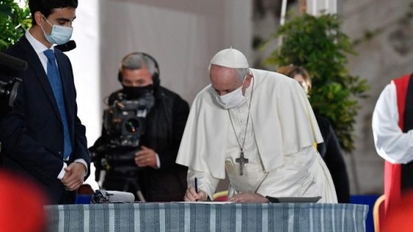 An Appeal for Peace is signed in Rome by Pope Francis and by leaders of world religions gathered at the International Prayer Meeting for Peace 'No one is saved alone - Peace and Fraternity'.