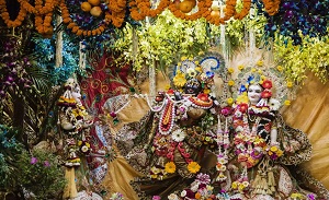 Many deities can be recognized by the symbols associated with them. Shiva is often symbolized by the 'linga' or 'tripundra' - the three horizontal lines on his forehead. In the same way, Krishna can be identified by the peacock feather he wears in his head and also by the prong-like mark on his forehead.