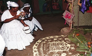 Enslaved people in Haiti and Louisiana syncretized their loa with Catholic saints, and many of the loa have corresponding figures in Catholicism. They are called upon in ritual by Voodoo mambos or houngan, and are presented with offerings of food and drink before they are petitioned for assistance. In some African traditional religions, the orishas are worked with, in addition to or instead of the loa. The orishas are the human form of spirits found in the Yoruba belief systems.